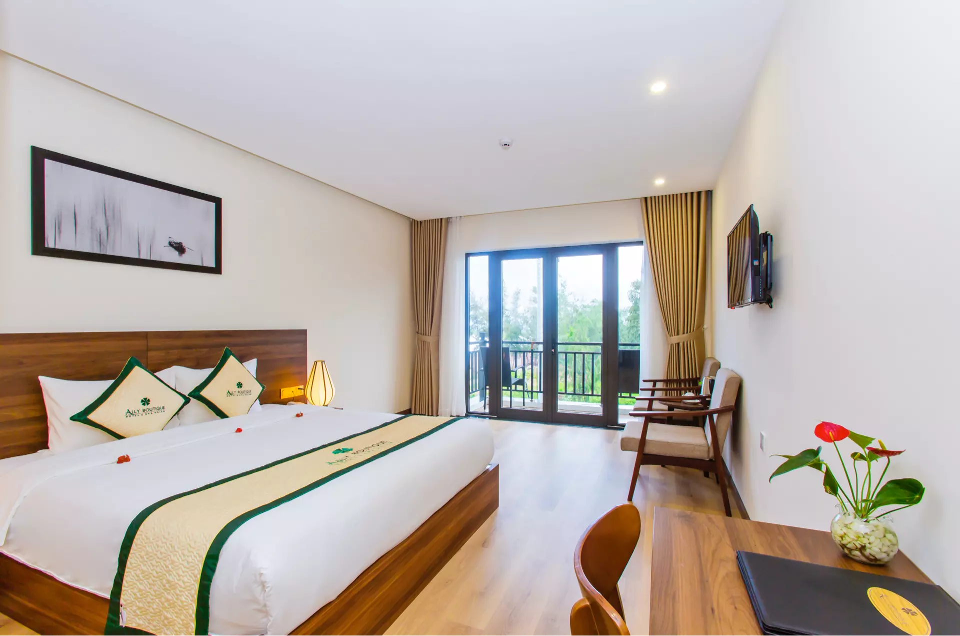 Awaken your dream getaway in a refined living space, where every detail is thoughtfully crafted to four-star standards. Step onto your private balcony and feel the gentle sea breeze of Cửa Đại, embracing a sense of complete relaxation in the heart of Hoi An. Choose the perfect retreat to begin a memorable journey of enjoyment with your family.